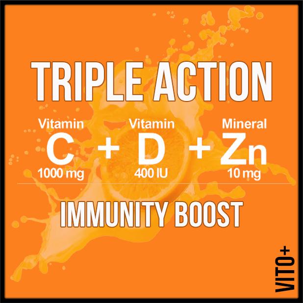 Add our Triple Action Electrolyte Vitamin C Vitamin D Zinc Effervescent supplement to your routine today!